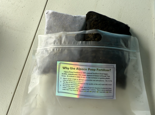 Made with love (and a little help from our happy alpacas) on our ranch in Texas, this fertilizer is fast-acting, never burns your plants, and even works in hydroponic systems. Whether you're reviving a struggling plant or boosting your vegetable garden, Pachamama’s Alpaca Poop is the natural choice for healthy, vibrant growth.